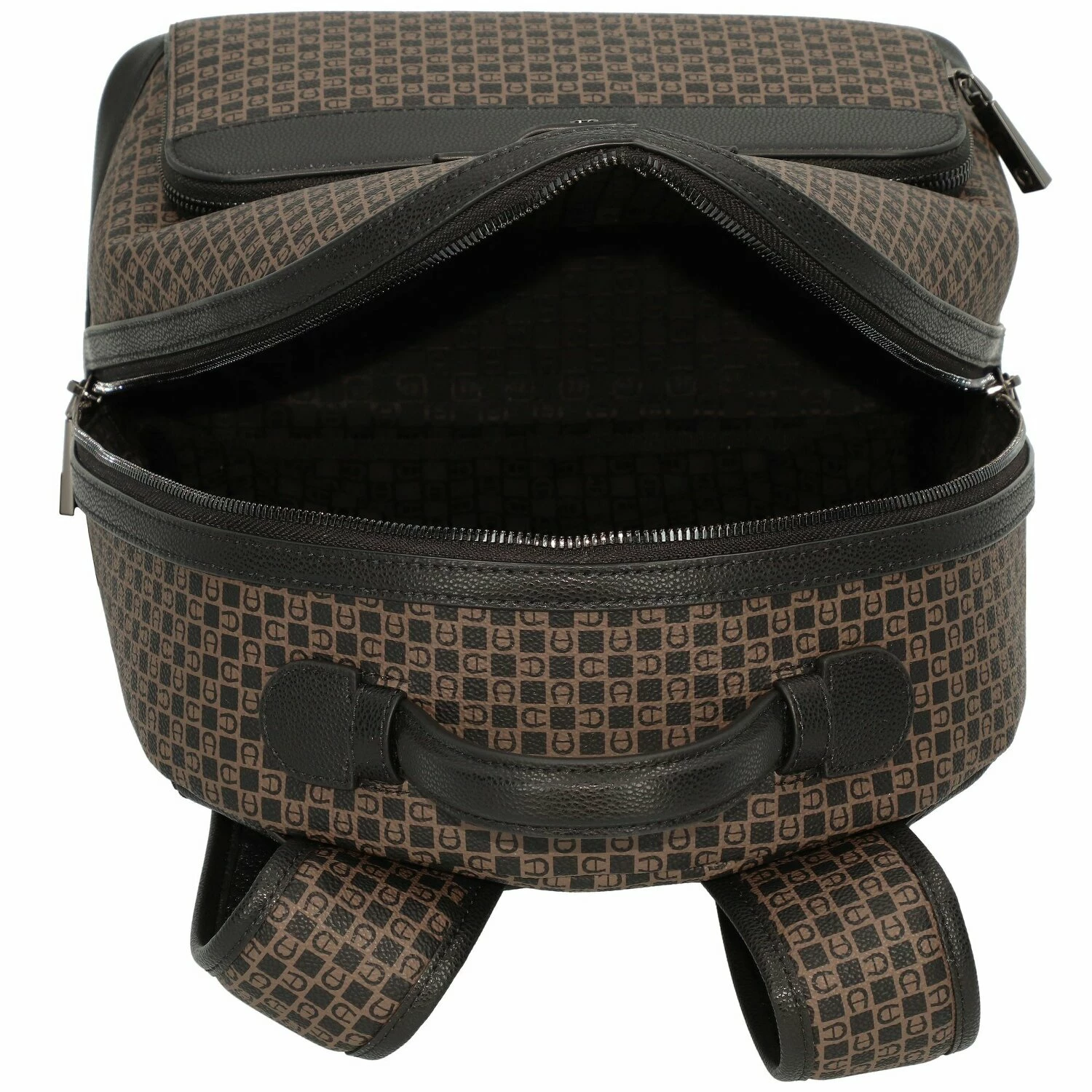 Edler City Rucksack mit Tabletfach der Marke AIGNER aus strapazierfähigem Gewebe mit Lederbesatz mit Dadino-Logo-Print. Der Rucksack verfügt über mehrere Innen- sowie Außenfächer, so können Sie alles Wichtige verstauen. Die glänzenden Metallakzente runden den Look perfekt ab. Ideal für den Alltag, das Büro oder die nächste Reise.