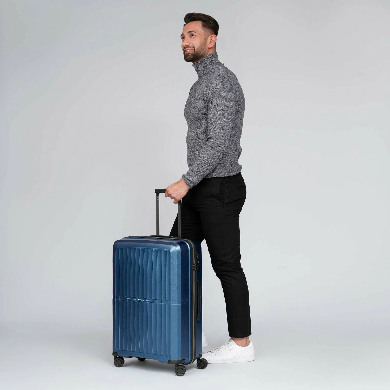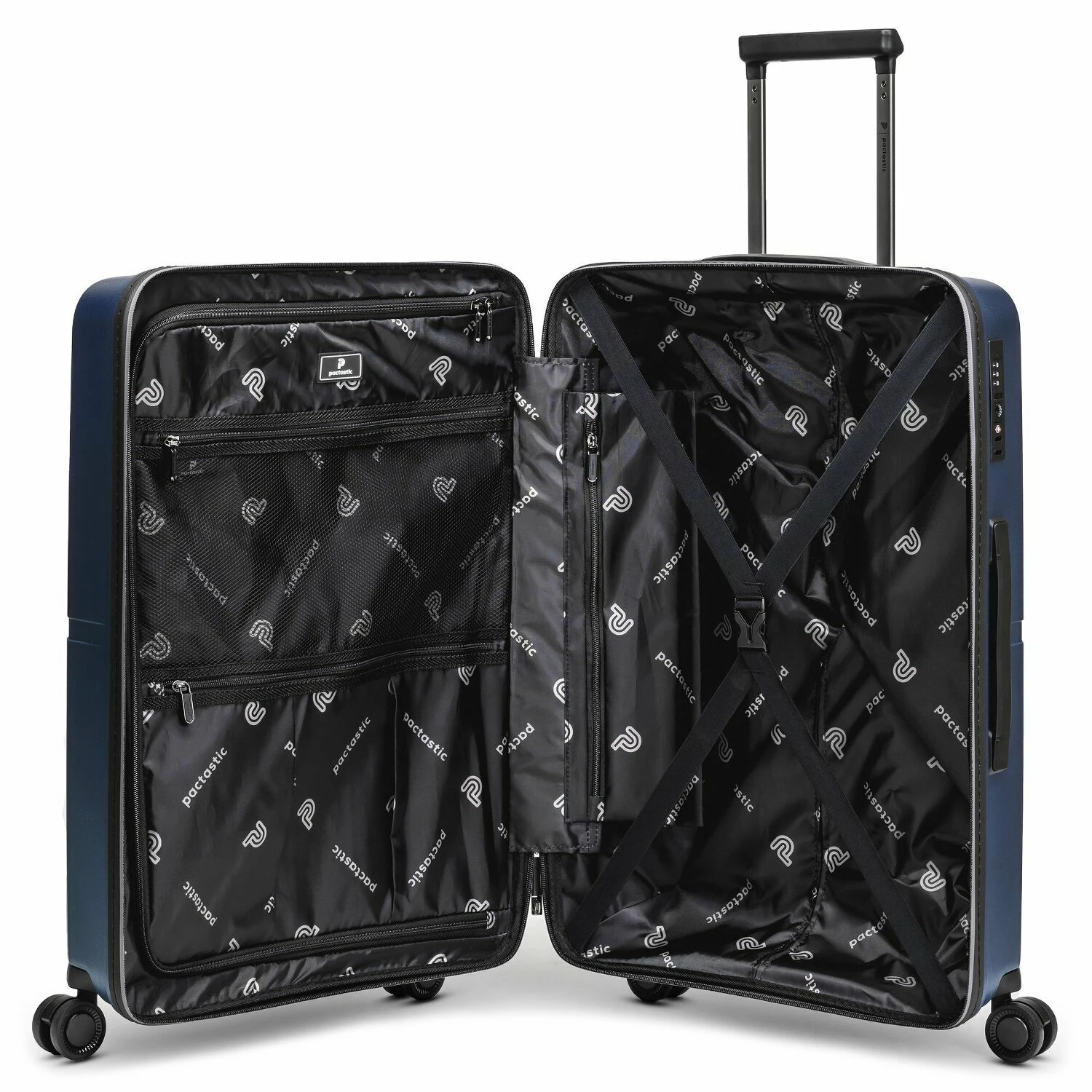 Stilvoller Trolley der Marke Pactastic ausgestattet mit 4 leichtlaufenden Rollen und arretierbarem Griff sowie Tragegriff oben und an der Seite. Im Inneren bietet der Trolley genügend Stauraum. Dank Wäschefach und Kreuzpackgurt bleibt unterwegs alles an seinem Platz. Ihr neuer Begleiter für die nächste Reise.