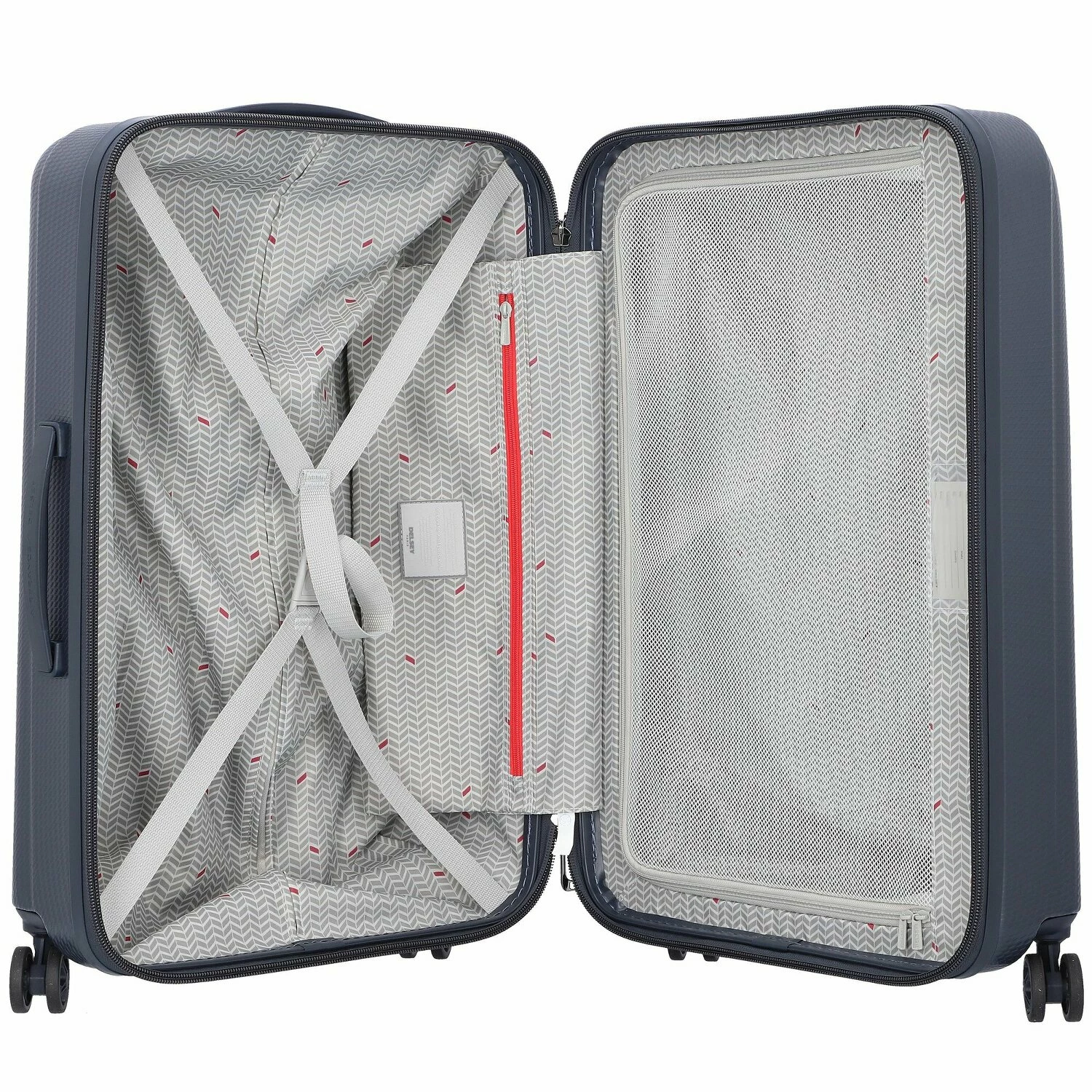 Robuster 4-Rollen Trolley von Delsey der New Envol Serie, einer Serie in Kooperation mit Air-France, aus widerstandsfähigem Polycarbonat. Mit den vier multidirektionalen und geräuscharmen Doppelrädern lässt sich der Koffer bequem Rollen und kann flexibel an einem der drei Griffe getragen werden. Das Hauptfach bietet genug Platz für eine Reise und ist mit einem Kreuzpackgurt und seinem raumteilenden Netzfach sehr gut organisiert. Weitere Highlights sind das integrierte TSA-Schloss und der patentierte Reißverschluss, damit ihr Gepäck optimal gegen Diebstahl geschützt ist.