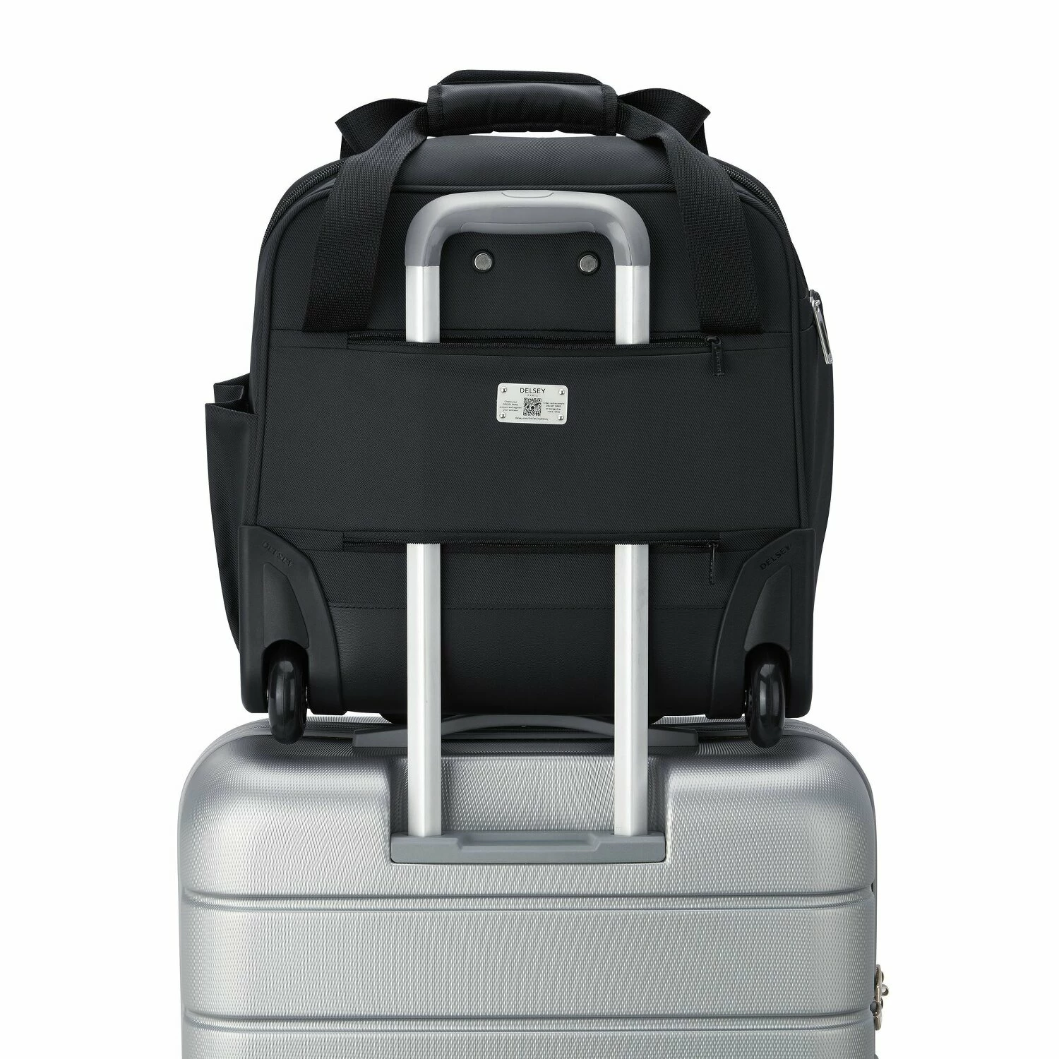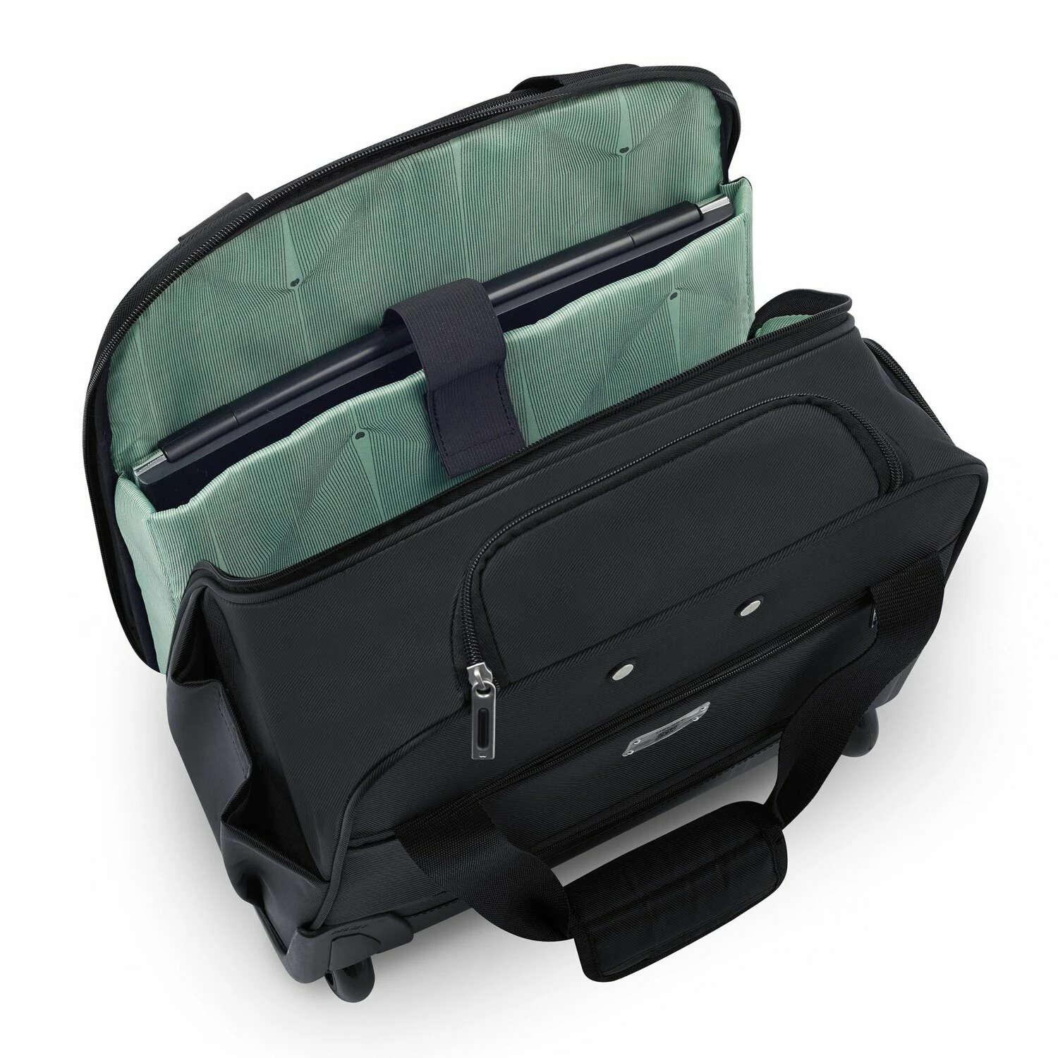 Komfortabler Businesstrolley von Delsey aus strapazierfähigem Polyester. Der Trolley ist mit einem Tablet- und Laptopfach ausgestattet und bietet genügend Platz für eine Wochenendreise. Ein arretierbarer Griff mit 2 Rollen sowie ein Tragegriff sorgen für Mobilitätsmöglichkeiten.