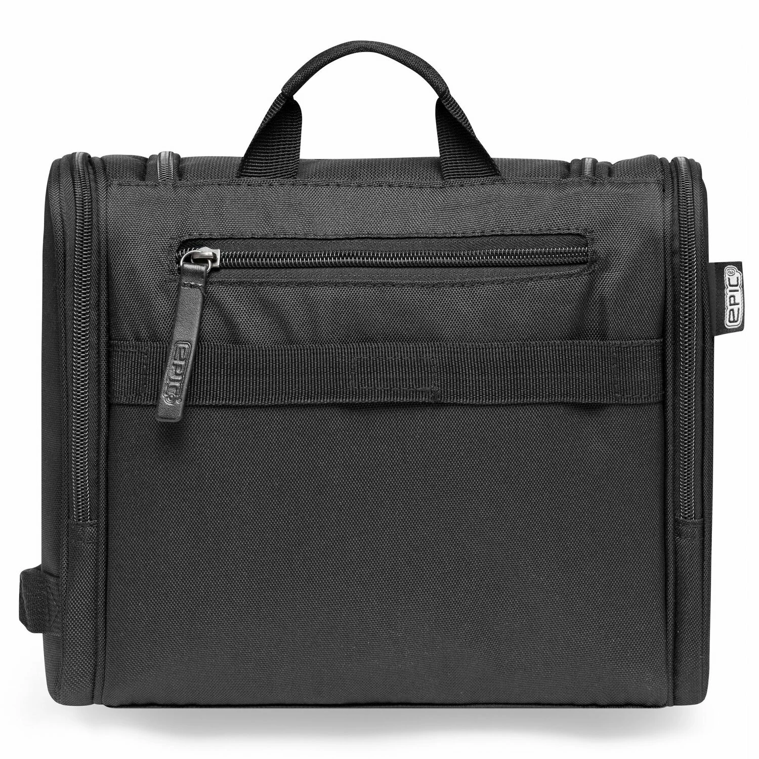 Stilvoller Kulturbeutel von Epic besitzt sehr gute Innenaufteilung. Sie verfügt über ein großes Hauptfach und bietet mit zahlreichen Nebenfächern viel Platz, optimale Organisation und Übersicht. Eine Aufstecklasche auf der Rückseite ermöglicht es, die Tasche auf den Ausziehgriff eines Trolleys zu stecken.