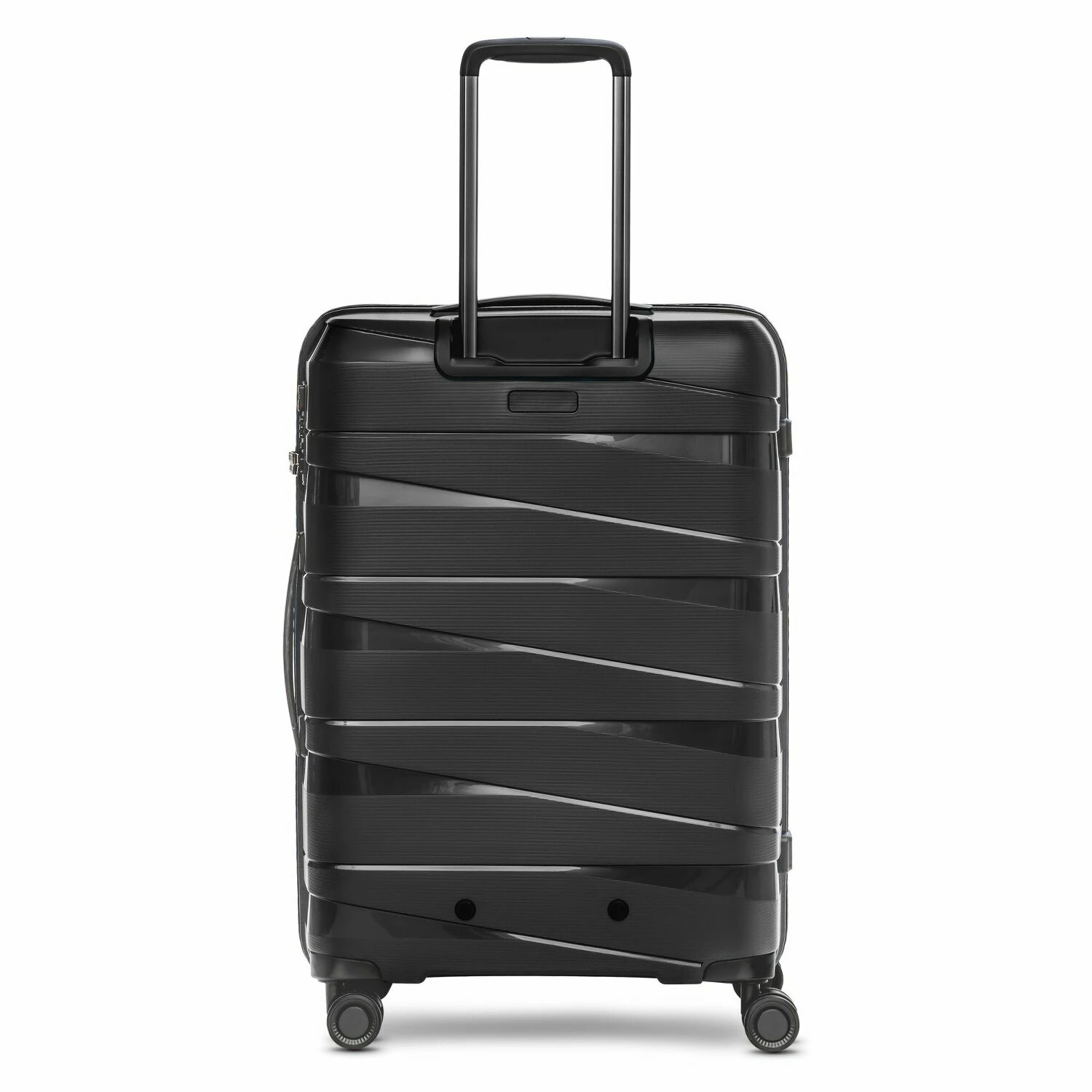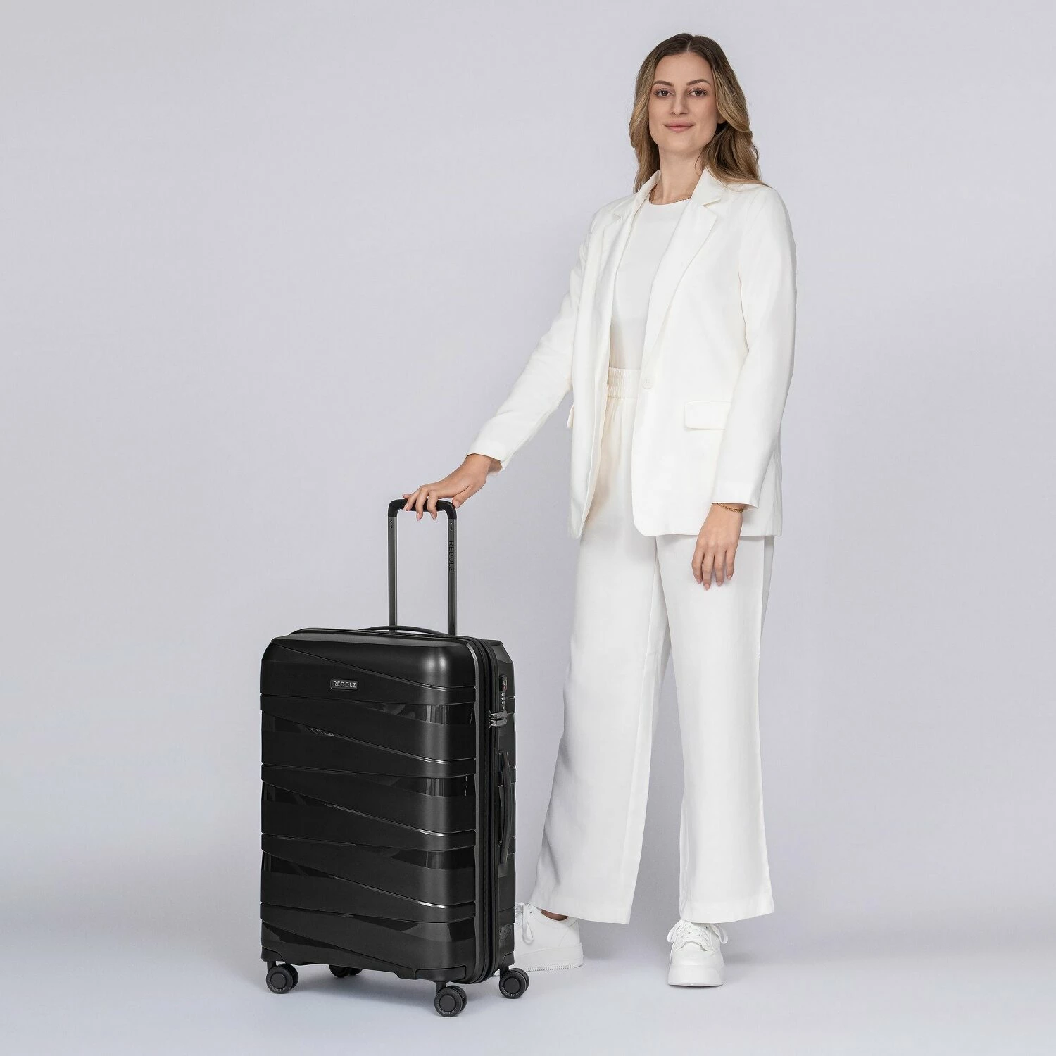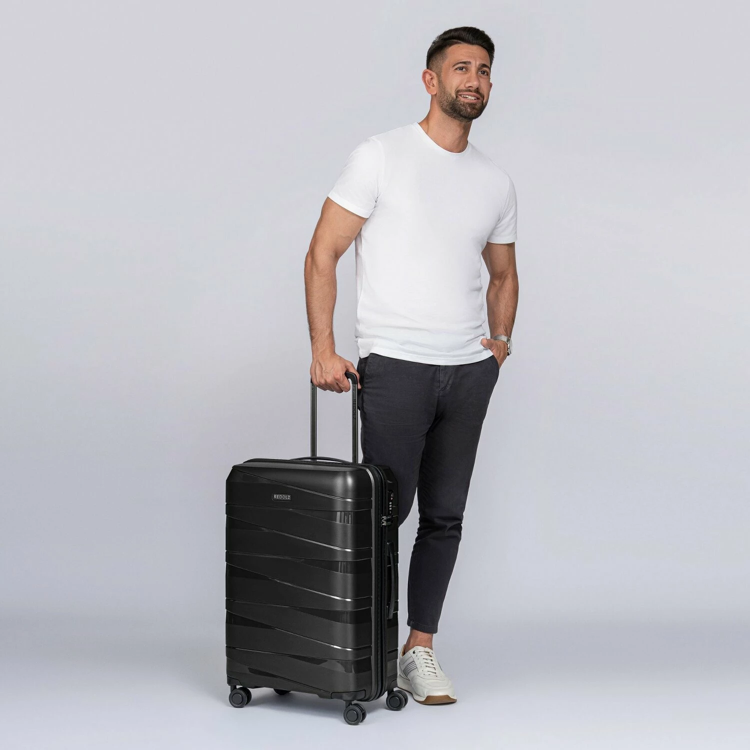 Designstark, mit hochwertigen Materialien und durchdachter Ausstattung bietet der Trolley einen hohen Reisekomfort und lässt keine Wünsche offen. Die stabile Hartschale aus Polypropylen ist leicht aber dennoch bruchsicher und schützt Ihr Gepäck optimal. Das intelligente Innenleben mit Kreuzpackgurt und einem separat bepackbaren Nebenfach ermöglicht einfach und schnell die Organisation von Reiseutensilien und Kleidungsstücken. Die widerstandsfähigen Rollen sind geräuscharm und lassen sich in alle Richtungen drehen. Dadurch ist auch ein schwer beladener Koffer keine Belastung während Ihrer Reise. Ein TSA-Schloss sorgt für mehr Sicherheit.