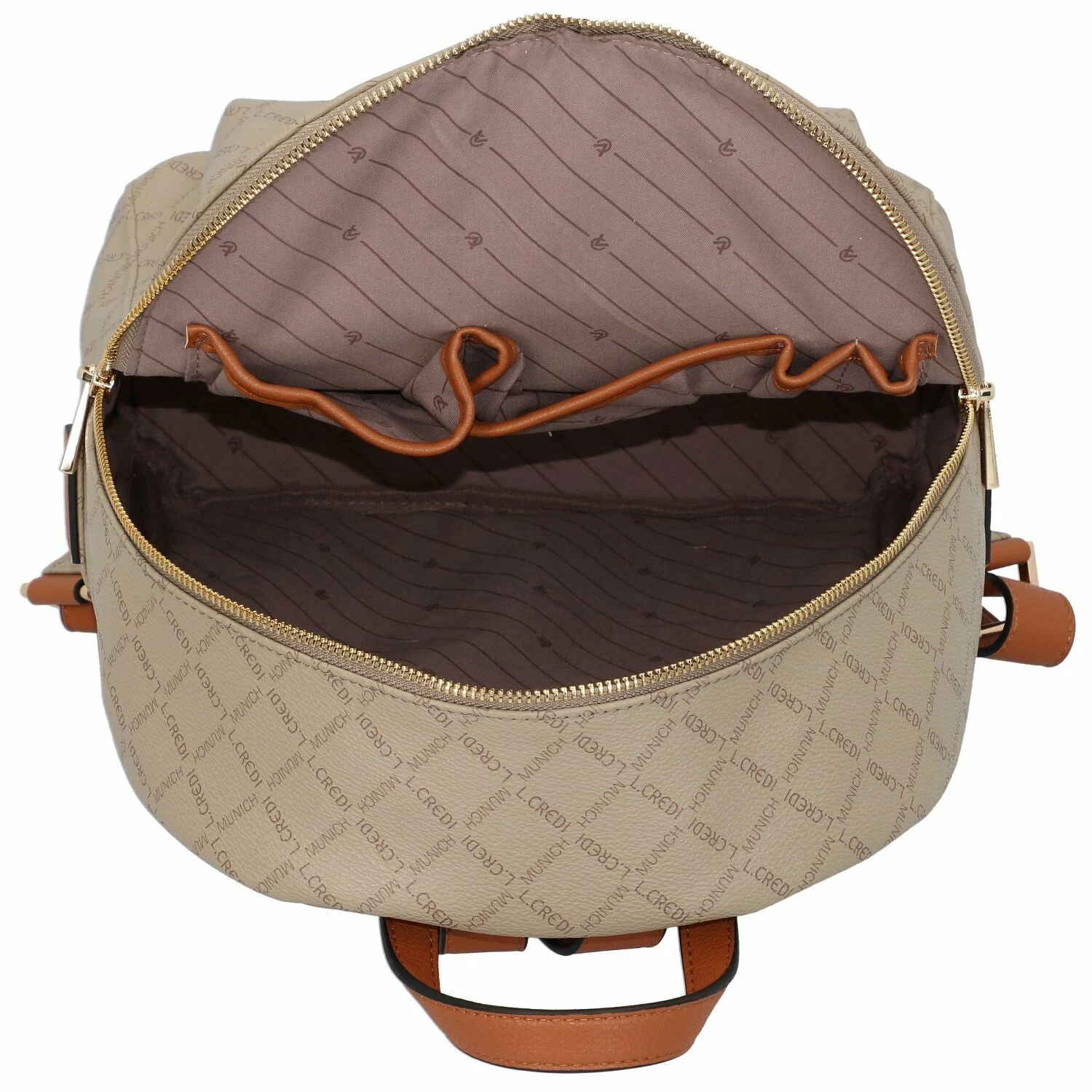 In diesem trendigen City Rucksack von L.Credi mit Allover-Logoprint lässt sich alles verstauen, was Sie für einen Ausflug in die City benötigen. Der Rucksack ist aus robustem Kunstleder hergestellt und mit Fächern für Wertsachen, Handy, Geldbörse und mehr ausgestattet. Der praktische und zugleich elegante Begleiter für die modebewusste Dame.
