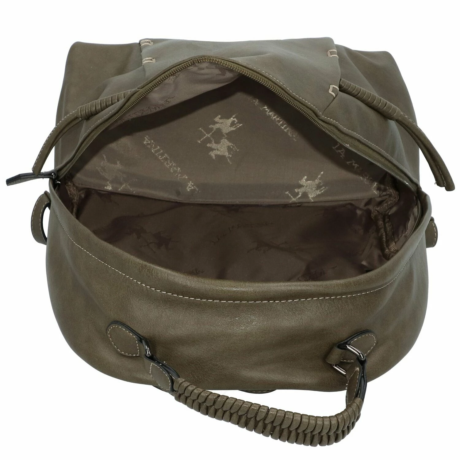 Modisch eleganter City Rucksack von La Martina der Angelina Serie aus Kunstleder. Das Hauptfach bietet genug Platz und ist mit einem Reißverschlussfach und einem Innenfach ausgestattet. Der perfekte Begleiter für einen Ausflug in der Stadt.