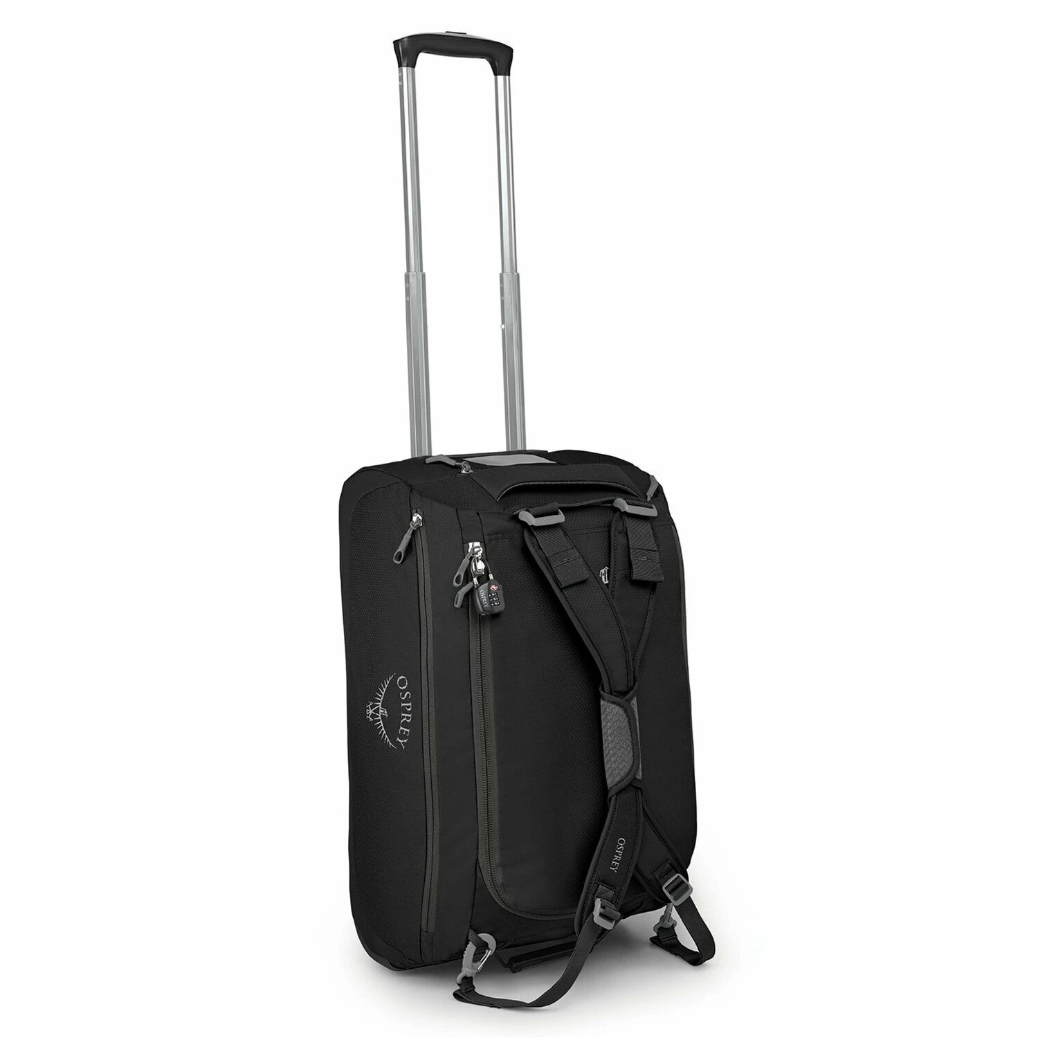 Lassen Sie sich faszinieren von dem 2-Rollen Rucksacktrolley der Marke Osprey, mit seinem dynamischen Design und seinem geringen Gewicht, lässt er sich Prima für Reisen benutzen. Seine markanteste Funktion ist die Rucksackfunktion, mit dieser lässt er sich leicht in ein Rucksack umwandeln und auf dem Rücken tragen. Bei Nichtgebrauch können Sie die Tragegurte auch wieder verstauen. Durch seine geringe größe lässt es sich komfortabel in der Flugzeugkabine unterbringen. Die zahlreichen Nebenfächer helfen Ihnen dabei einen direkten Überblick Ihrer Wertsachen zu behalten.