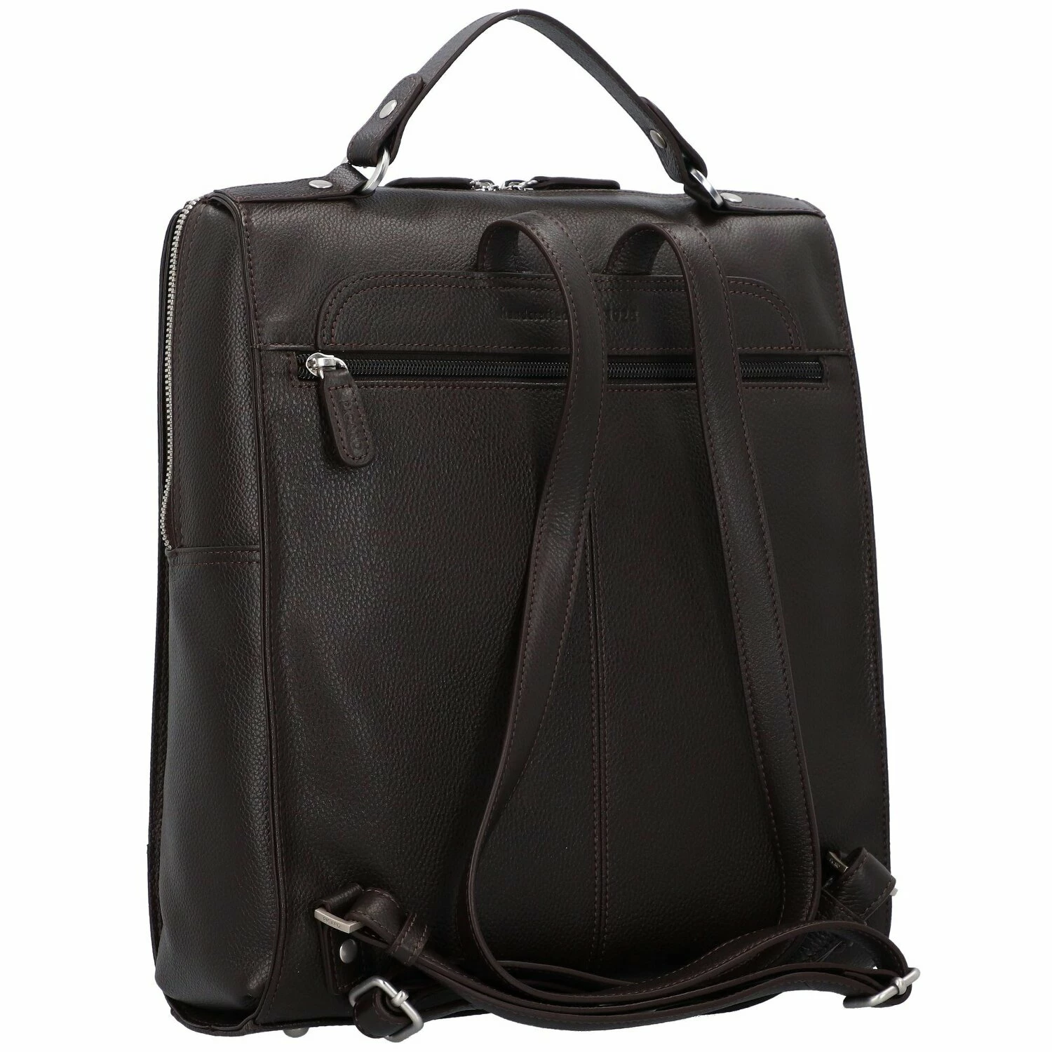 Eleganter und stilvoller Rucksack aus robustem Rindsleder ist vielseitig verwendbar. Das große Hauptfach lässt sich mittels Reißverschluss öffnen und schließen.