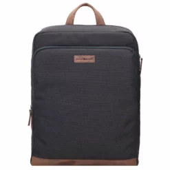 Umweltfreundlicher Rucksack von Greenburry mit Stoff aus recycelten PET-Flaschen und Lederapplikationen. Der Rucksack besteht aus einem Hauptfach mit gepolsterter Laptoptasche und einem Nebenfach, welches Steckfächer und ein Reißverschlussfach beinhaltet. Ein gepolstertes Tragesystem mit verstellbaren Schultergurten und rückseitige Trolley-Aufsteckfunktion machen den „Byron“ Rucksack zu einem bequemen und stillvollen Begleiter im Büroalltag oder auf Reisen.