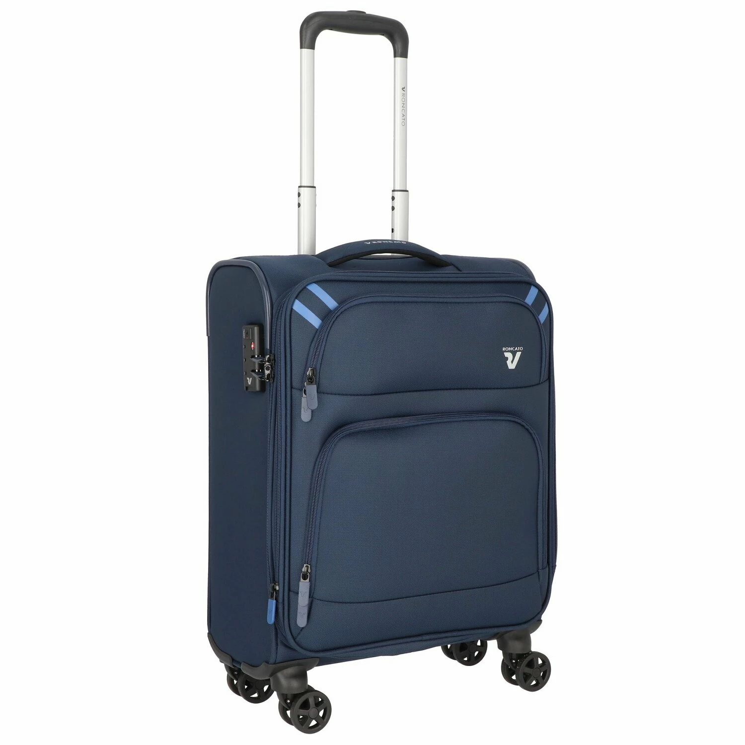 Gut organisierter Kabinentrolley der Twin Serie von Roncato aus reißfestem Material. Er verfügt über ein geräumiges Hauptfach mit Packriemen und einem Mesh-Reißverschlussfach sowie weitere Reißverschlussfächer auf der Frontseite. Mit vier leicht zu manövrierenden und geräuscharmen Doppelrädern, einem integriertem TSA-Schloss für mehr Sicherheit und einer praktischen Dehnfalte für die Erweiterung des Packvolumens ausgestattet.