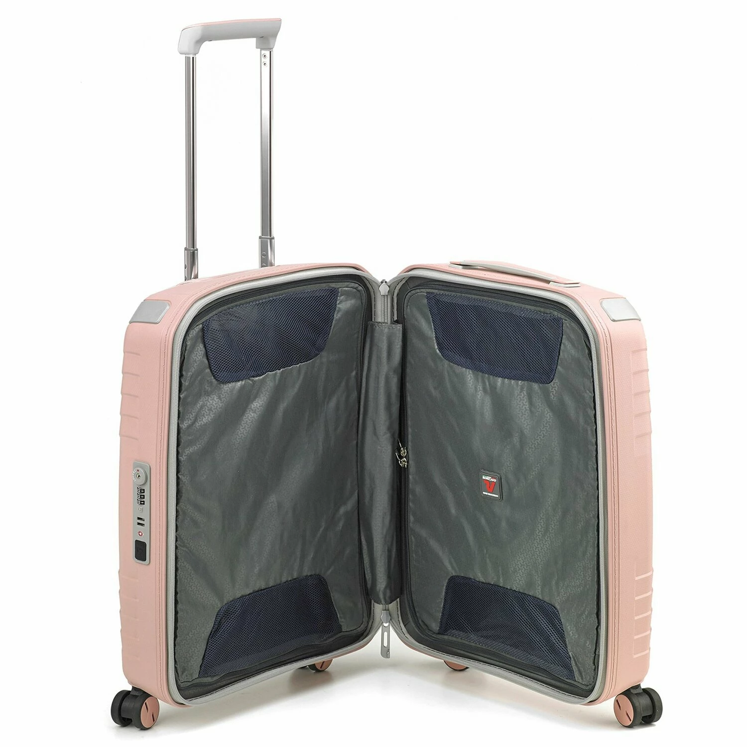 Stylischer Kabinentrolley von Roncato besteht aus recyceltem Polypropylen und ist somit stabil, robust und umweltfreundlich. Das Design des Koffers ist auffallend modern und macht ihn zum idealen Begleiter. Die hochwertige Verarbeitung erstreckt sich auch auf die leicht laufenden Rollen und den Teleskopgriff. Der Trolley ist zusätzlich mit integriertem USB-Anschluss für Powerbank ausgestattet für einfaches Aufladen unterwegs.