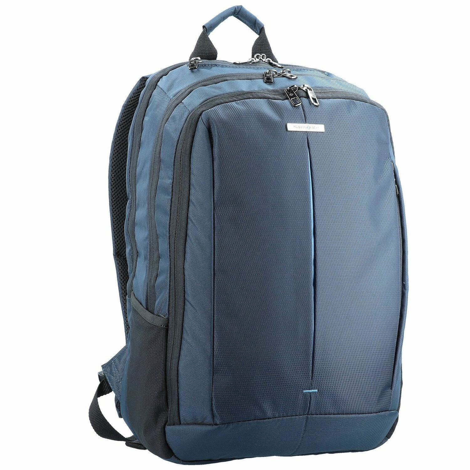 Hochwertiger Rucksack von Samsonite der GuardIT 2.0 Serie mit Laptopfach. Das Hauptfach verfügt über ein Fach für A4 Unterlagen, ein Netzfach und bietet genug Platz für einen großen Aktenordner. Das Laptop- und Tabletfach ist gepolstert und vom Hauptfach getrennt. Auf der Vorderseite sind weitere Nebenfächer mit genug Stauraum für Zubehör und andere Dinge. Mit der Lasche auf der Rückseite lässt er sich auf einen Trolley stecken.