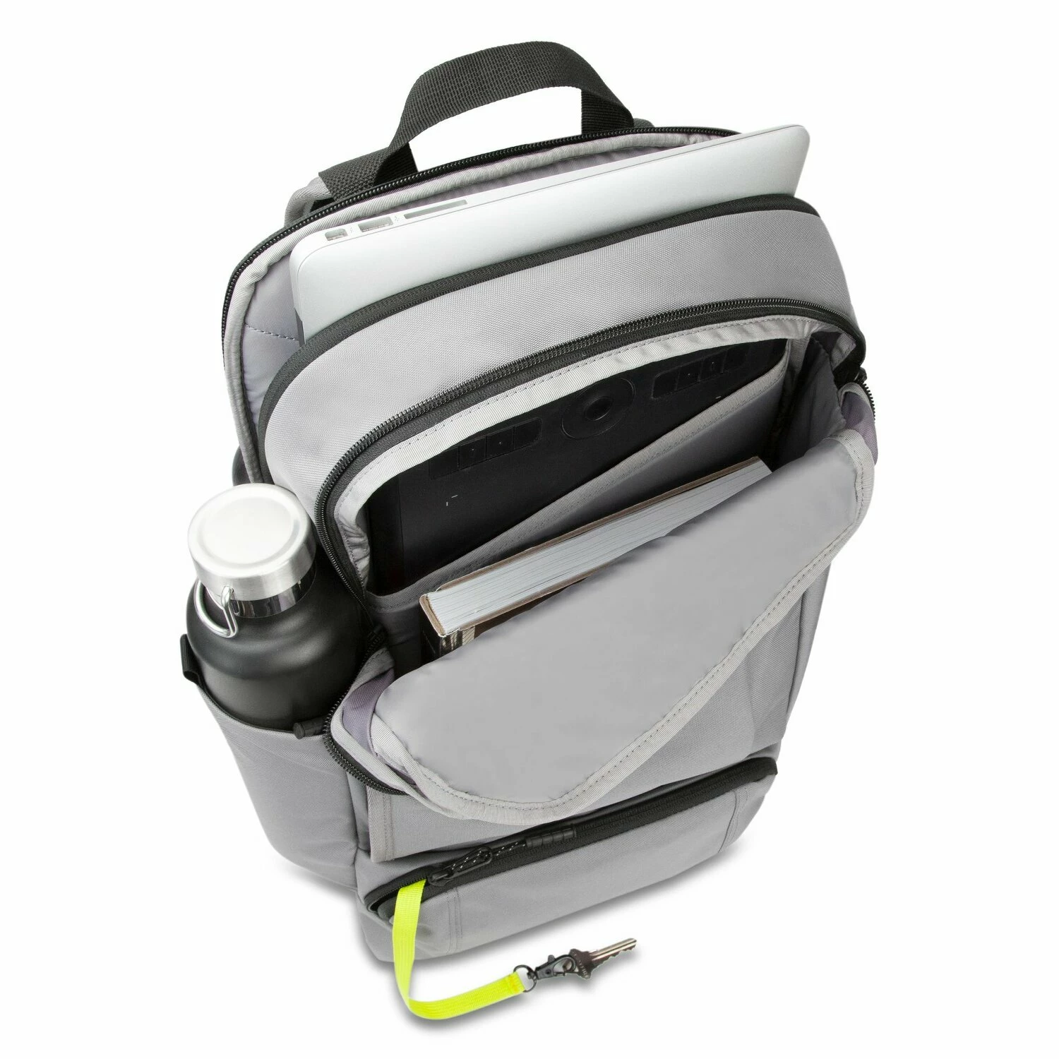 Stylischer, gut organisierter Rucksack von Timbuk2 mit zwei Fächern, passend für A4-Unterlagen, einem Laptopfach, Organizer und weiteren Fächern für Wertsachen, Handy, Flaschen und mehr. Ein gepolstertes Tragesystem mit Brustgurt ermöglicht auch bei schwerem Gewicht ein bequemes Tragen. Der treue Begleiter für zahlreiche Situationen.