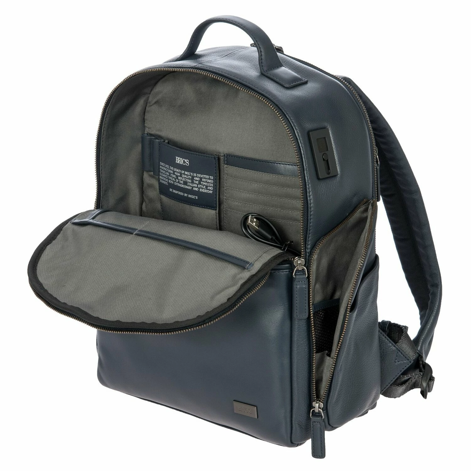 Hochwertiger Rucksack von Bric’s mit großem Hauptfach, Fach für Laptop, Tablet und mehrere weitere Nebenfächer für Smartphone, Stifte, Kreditkarten und mehr. Der ideale Begleiter fürs Business und auf Reisen.