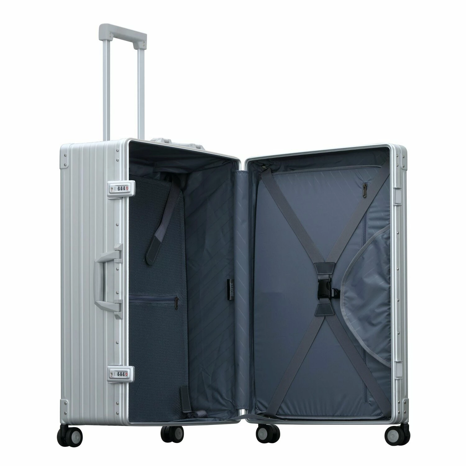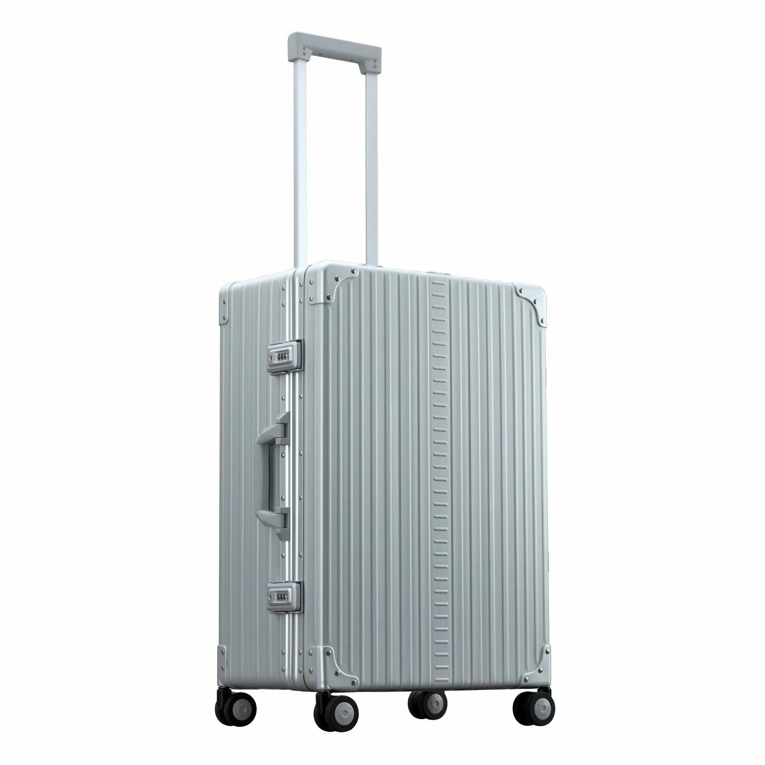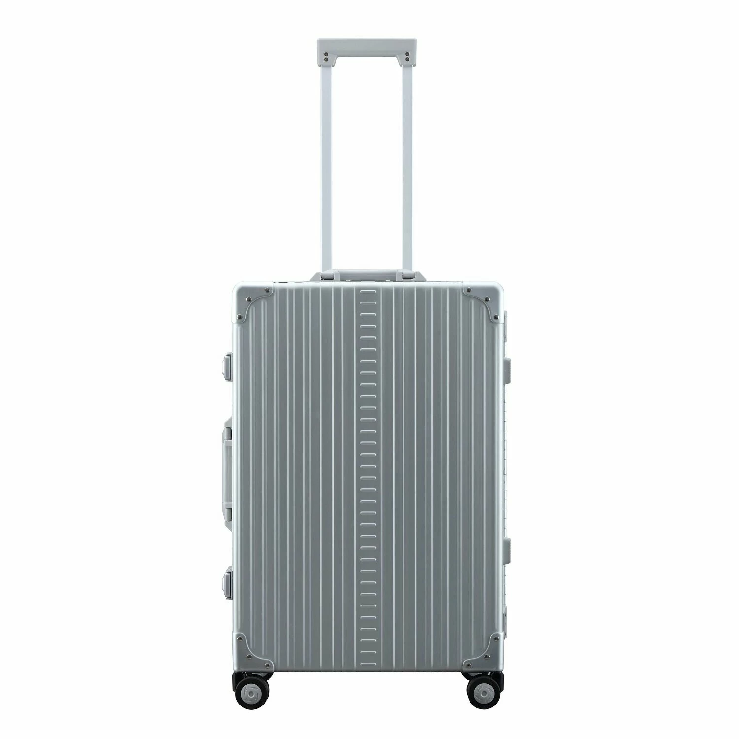 Zeitlose Eleganz und höchste Qualität vereinen sich in diesem Trolley aus hochwertigem Aluminium. Mit seiner durchdachten und intelligent angelegten Innenaufteilung bietet der Koffer gute Übersicht. Zwei TSA-Schlösser für mehr Sicherheit sowie vier geräuscharme und in alle Richtungen bewegliche Doppelrollen runden das Design ab. Der komfortable Begleiter für den Urlaub. Der Trolley kommt mit einem Kleidersack.